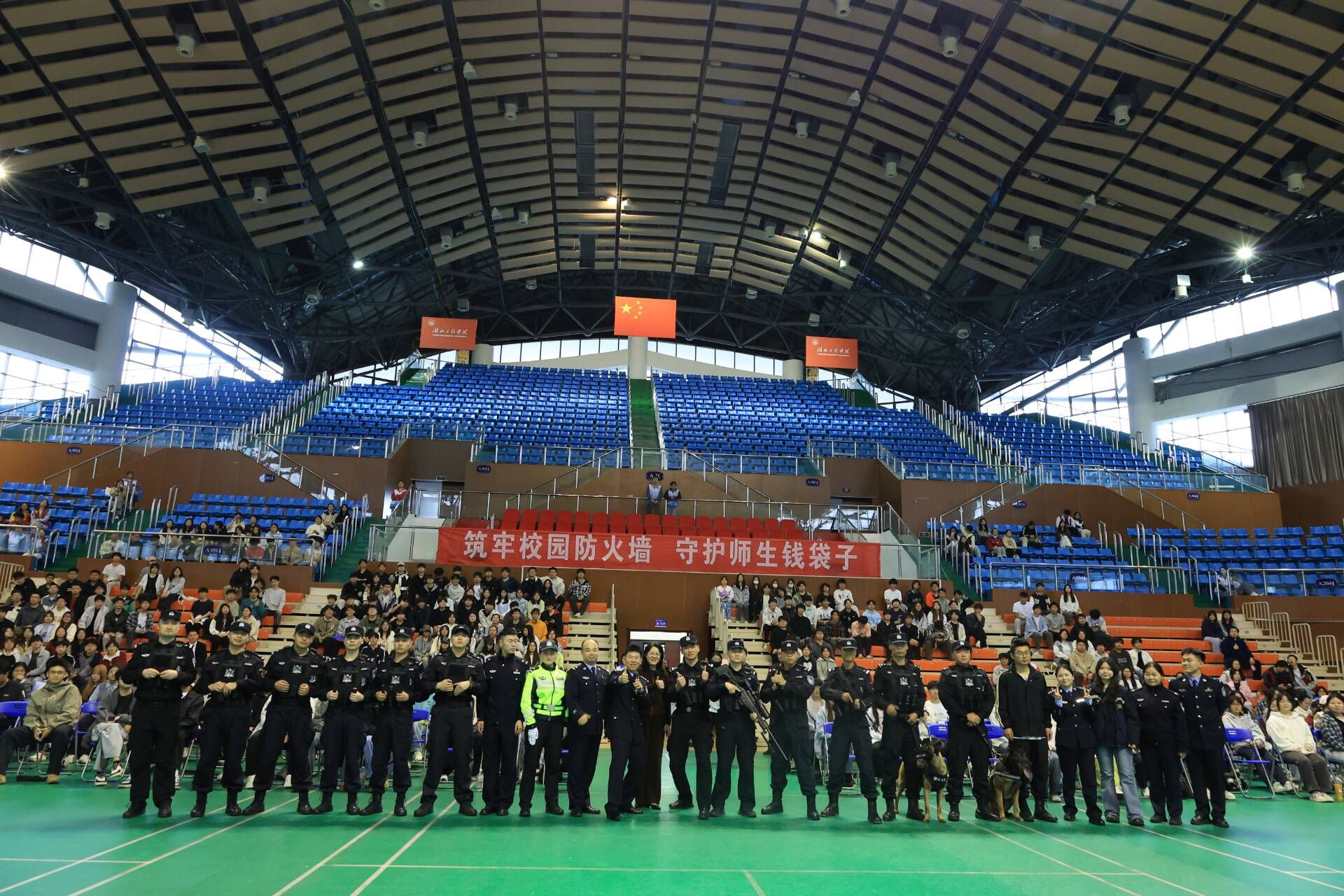 4月28日下午,湛林体育馆内掌声雷动、笑声不断,一场别开生面的安全教育脱口秀活动在这里精彩上演。相关职能部门负责人、辅导员及800余名学生代表共同参加活动。